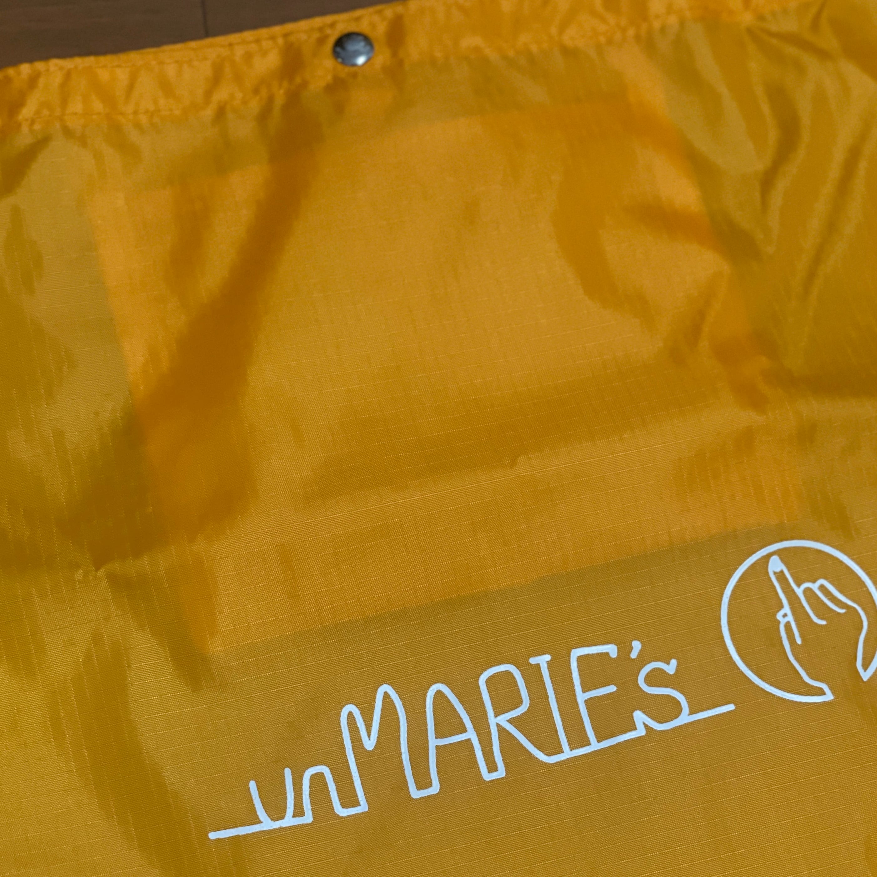 ロゴ入りのマルシェバッグ。大判で生地もしっかりめ。ショルダー紐がついているので両手空けたいときにも便利です。(ショルダー紐は取り外しできます)